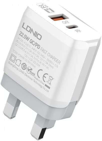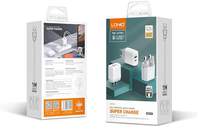 LDNIO - شاحن A2421C - EU مع كابل نوع C من لدنيو - ابيض