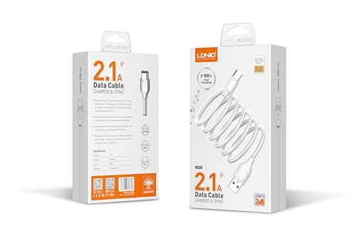 LDNIO - كابل بيانات للشحن السريع نوع سي 2.1 أمبير من ليندو، لون أبيض، طول 2 م، LS372
