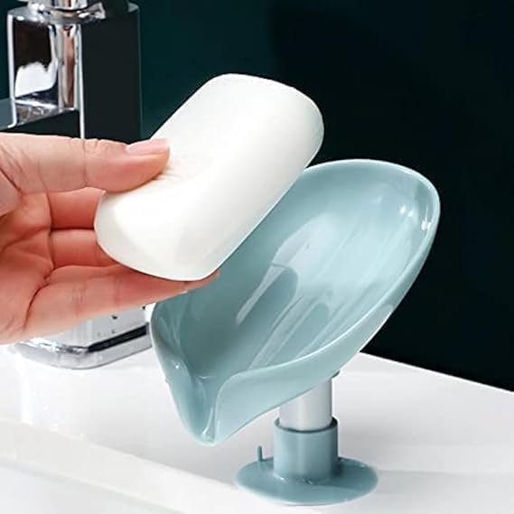 Generic - حامل صابون على شكل ورقة شجر - طبق صابون بلاستيكي ذاتي التصريف، حامل صابون مبتكر بكوب شفط مناسب للاستحمام غير المسامي والحمامات والمطابخ واحواض الاستحمام، لون اخضر، قطعة واحدة
