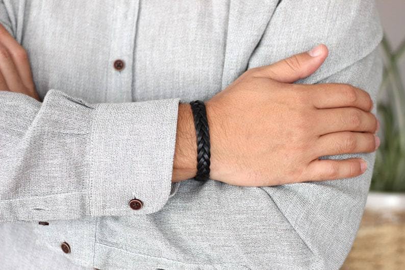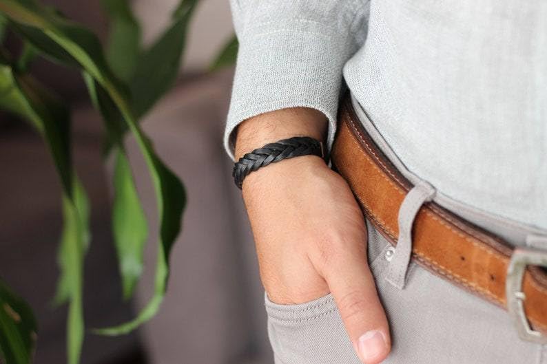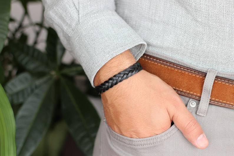 Generic - إسورة من نوفيلتي للرجال، مصنوعة من الجلد، بلون أسود وتصميم مبتكر، مقاس موحد