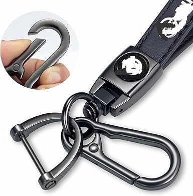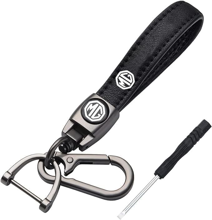 Generic - ميدالية وسلسلة مفاتيح سيارة من الجلد وحلقات معدن مناسبة لمفاتيح السيارة ومفاتيح العائلة - متوافقة مع ام@@جي أسود