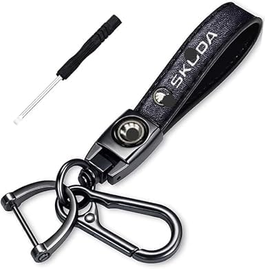 Generic - ميدالية وسلسلة مفاتيح سيارة من الجلد وحلقات معدن مناسبة لمفاتيح السيارة والدراجات النارية ومفاتيح العائلة - متوافقة مع سكودا أسود
