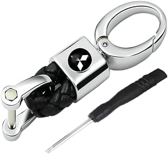 Generic - ميدالية وسلسلة مفاتيح سيارة من الجلد وحلقات معدن مناسبة لمفاتيح السيارة والدراجات النارية ومفاتيح العائلة - مقاس صغير- متوافقة مع ميتسوبيشي أسود