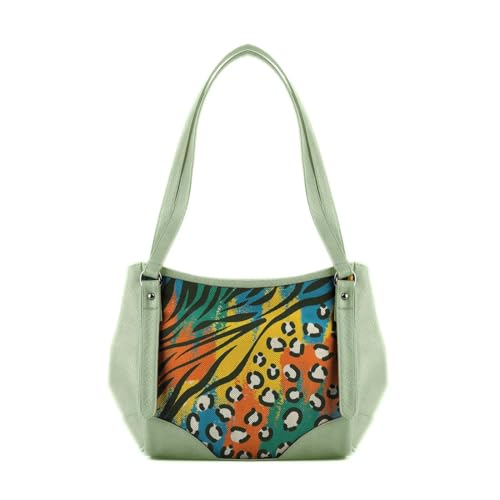 Generic - شنطة يد كبيرة توت من الجلد بنقوش أفريقية ومسامير زخرفية، أخضر مينت