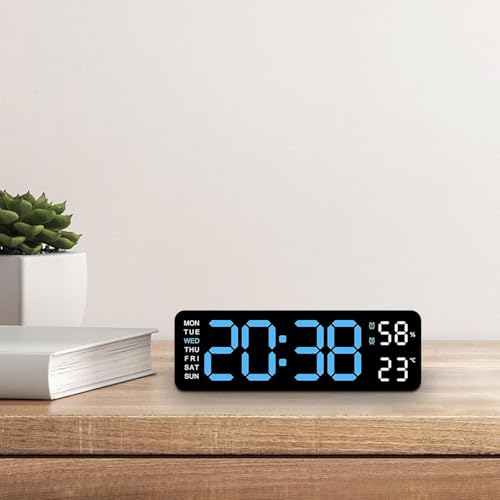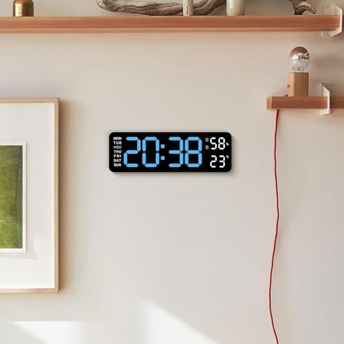 Generic - ساعة حائط رقمية بشاشة LED كبيرة 32 سم مع عرض الوقت والتاريخ واليوم ودرجة الحرارة، ساعة حائط مع جهاز تحكم عن بعد بخاصية التعتيم التلقائي سهلة وصامتة للمنزل والمكتب، أزرق