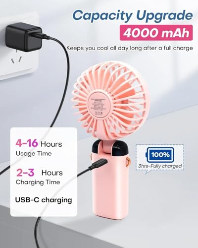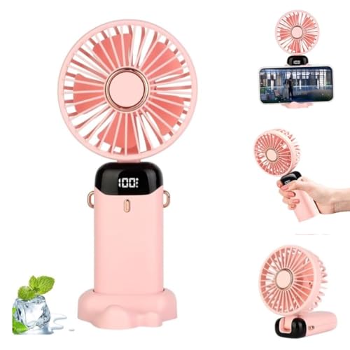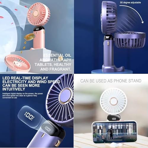 Generic - مروحة محمول قابلة للشحن مع شاشة LED ، 90 درجة قابلة للتعديل ، 5 مستويات الطاقة ، حامل هاتف ، قابله لإعادة الشحن منفذ شحن Type-C,بطارية (Pink)