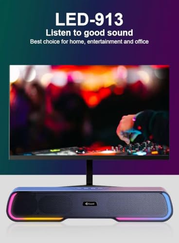 Generic - مكبر صوت ساوند بار ليد -913 قابل لإعادة الشحن يعمل ببطارية بلوتوث بإضاءة ملونة للألعاب مع إضاءة الفضاء اللوني ار جي بي من كيسونلي (لون أسود)