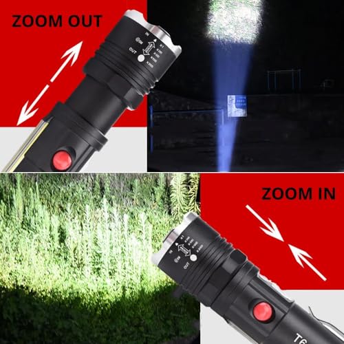 Generic - مصباح LED للطوارئ من هانسو، طاقة فائقة وتعدد الاستخدامات، مصباح يدوي LED عالي السطوع مع مصباح يدوي قابل للتكبير ومصباح جانبي سي او بي - مقاوم للماء وموفر للطاقة (أسود)
