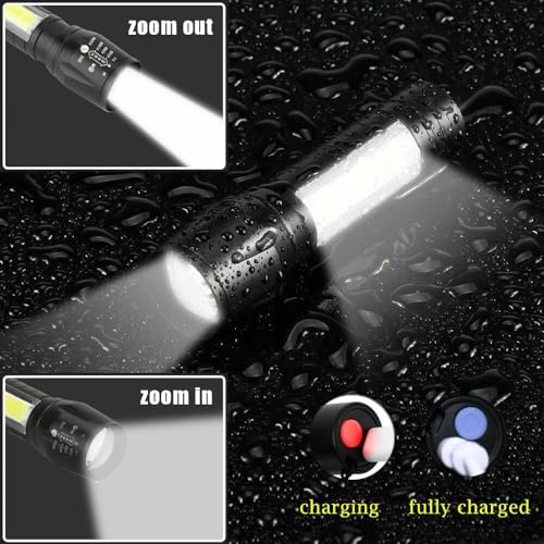 Generic - مصباح يدوي LED قابل لاعادة الشحن مع بطارية مدمجة + كيبل USB (عبوة واحدة)