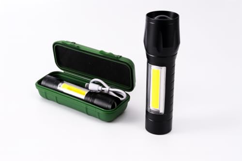 GENERIC - مصباح يدوي LED مع ضوء عمل جانبي – كشاف LED مع اضاءة جانبية وحزام يدوي