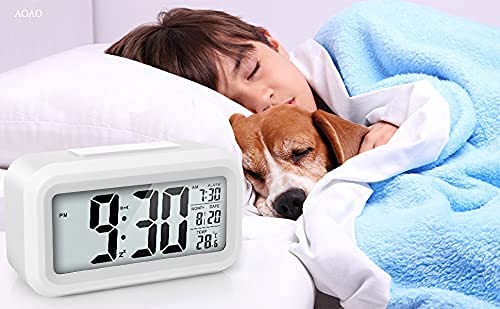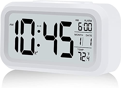 Generic - ساعة منبه بتصميم بسيط بشاشة ليد مع ضوء ليلي ذكي غفوة تاريخ 12-24 درجة حرارة داخلية مكتب تعمل بالبطارية ساعات LCD لتزيين غرف المعيشة وغرف النوم والمكتب المنزلي ابيض زجاج من اذر
