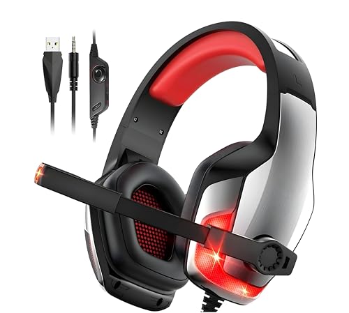 Generic - هيدفون جيمنج سلكية باضاءة LED ملونة وجودة صوت احترافية - مايكروفون عالي الحساسية ومتعدد الاتجاهات - منفذ USB و 3.5 ملم - كابل بطول 2.1 متر - موديل G5300 (احمر)