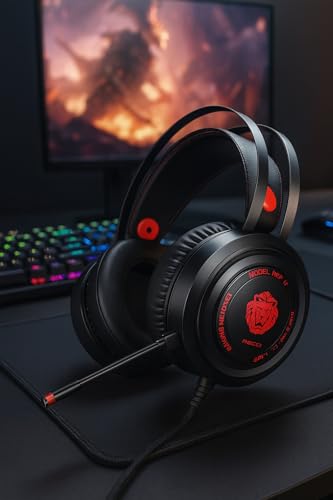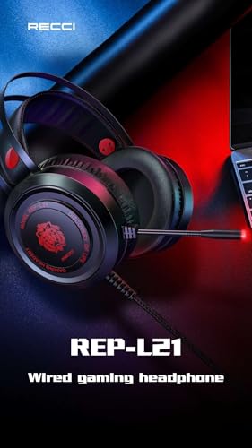 Generic - سماعة رأس REP-L21 للعب سلكية بإضاءة ليد مع مايكروفون مدمج - صوت قوي وواجهة USB و3.5 - تصميم خفيف ومريح