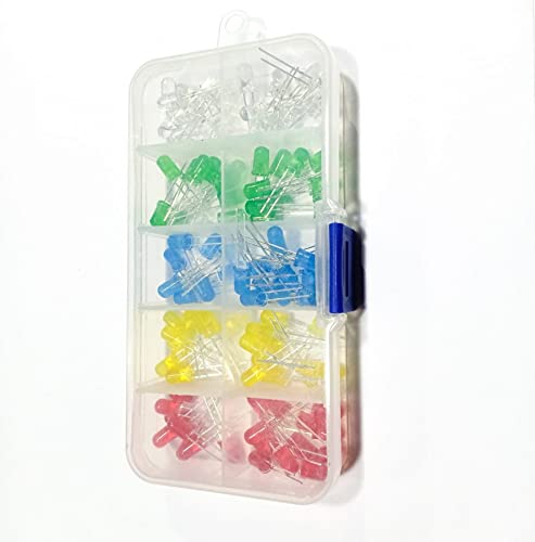 - مصباح LED 100 متعدد الألوان مقاس 5 ملم في الصندوق 20 × مصباح LED أبيض 20 × مصباح LED أخضر 20 × مصباح LED أصفر 20 × مصباح LED أحمر 20 × صندوق مصابيح LED أزرق