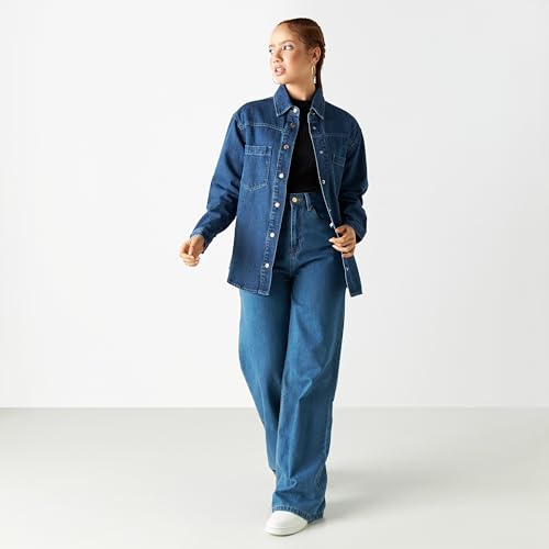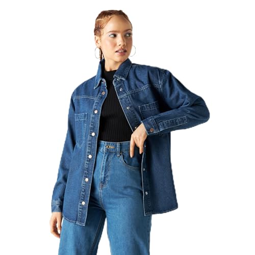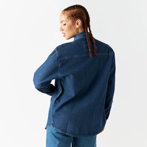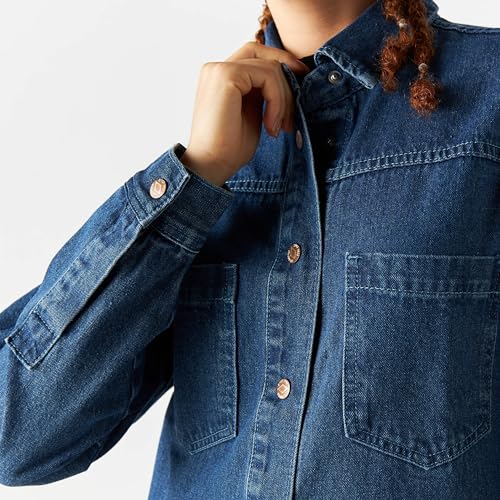 Lee Cooper - جاكيت جينز سادة بجيوب واكمام طويلة للنساء