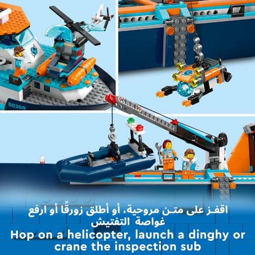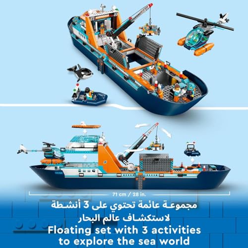 LEGO - سفينة سيتي اركتيك اكسبلورر 60368، قارب لعبة كبير يطفو مع طائرة هليكوبتر وزورق وسفينة فايكنغ و7 مجسمات مصغرة وشخصية اوركا، هدية للأطفال من سن 7 سنوات فما فوق للأولاد والبنات من ليجو