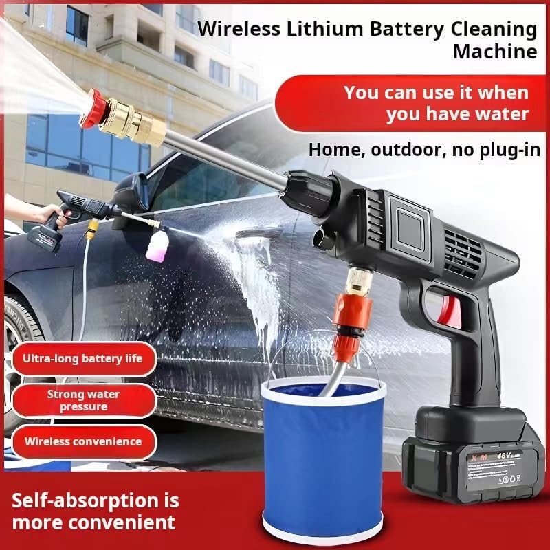 - أداء قوي وقوة: مزودة ببطارية ليثيوم مدمجة تعمل بنمط 48 فولت، مما يضمن ضغط ماء قوي والتعامل مع مختلف البقع العنيدة دون عناء. سواء كانت الأوساخ في السيارة أو فضلات الطيور أو البقع العنيدة الأخرى، يمكن إزالتها بسرعة في فترة زمنية قصيرة، مما يمنح سيارتك مظهرًا جديدًا تمامًا.