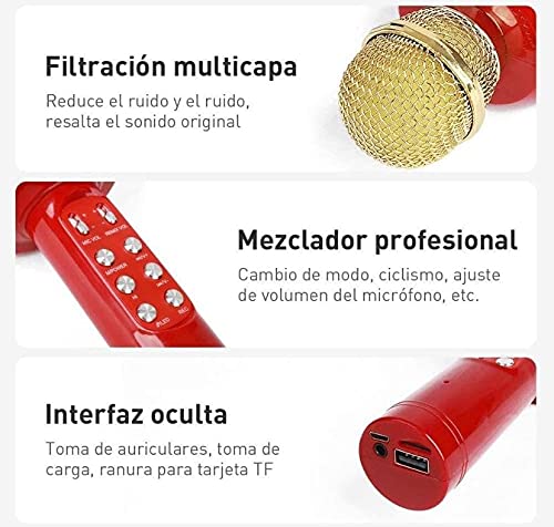 Altomex - ميكروفون كاريوكي لاسلكي بتقنية البلوتوث ومزود بإضاءة ليد من ليلونج LE-915