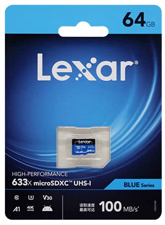 Lexar - بطاقة مايكرو اس دي سعة 64 جيجا من ليكسار (LSDMI64GBBCN633N) باللون الاسود والازرق