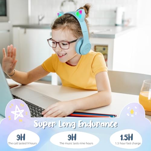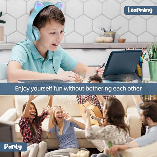 - 【مصابيح LED ملونة ووضع سلكي/لاسلكي】 أضف الضوء إلى الموسيقى مع سماعات الرأس اللاسلكية المذهلة للأطفال المزودة بإضاءة ليد! حتى عندما تنفد بطارية سماعات الرأس، يمكنك توصيل كابل الصوت 3.5 ملم للتبديل إلى وضع عدم الاتصال والاستمرار في الاستخدام. (تحتاج إلى إعداد كابل الصوت بنفسك).