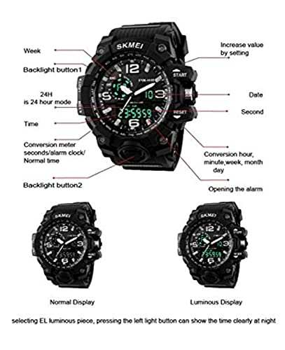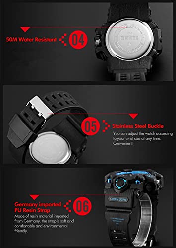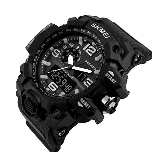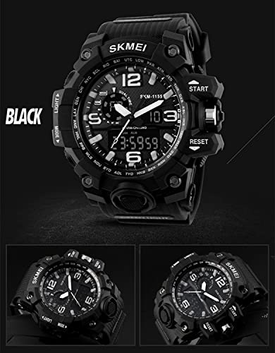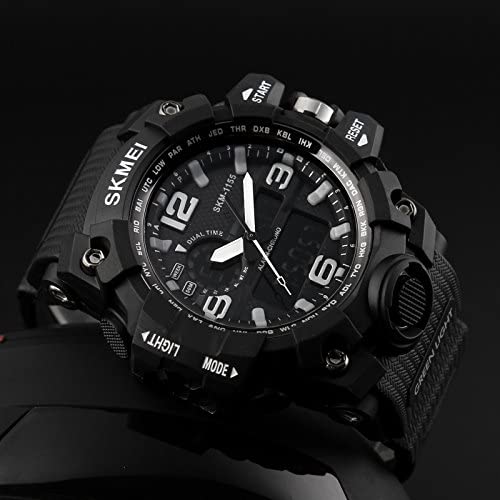 LIGE - سكمي ساعة رياضية رجال انالوج-رقمي 50 متر ماء بمينا أسود بسوار