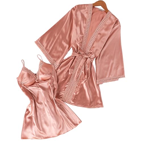 Soft Touch Lingerie - طقم لانجري ليلة الدخلة لانجري مكوّن من قطعتين روب و توب بدون أكمام, روب قصير بيبي دول ساتان بيجامة نوم لانجري قصير للنساء مقاس واحد من50كيلو إلى 80كيلو (NO:2010)