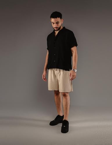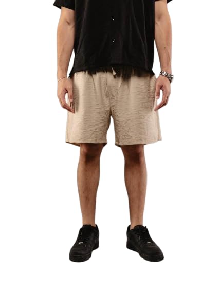 Generic - شورت كتان للرجال (بيج وأزرق فاتح)