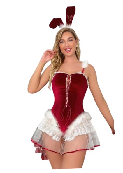 Generic - لانجري للنساء هابي نيو يير جميل قصير عالي الجوده لونين الاحمر والابيض