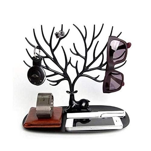 Spaceshoop - حامل حلقان وسلاسل وخواتم ودلايات وأساور بتصميم قرون غزال صغير على شكل شجرة لعرض وتخزين وتنظيم المجوهرات