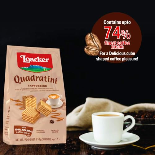 Loacker - بسكويت مربعات لواكر بنكهة الكابتشينو، وزن 110 جرام