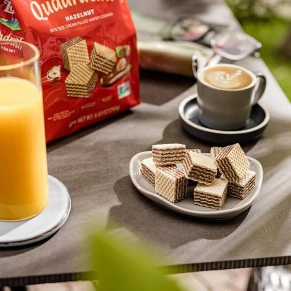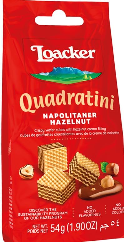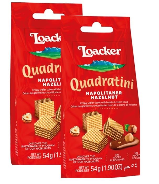 - محتويات العبوة: تحتوي كل عبوة على قطعتين من رقائق الشوكولاتة اللذيذة لواكر Quadratini Napolitaner بالبندق ، 54 غرام لكل منها