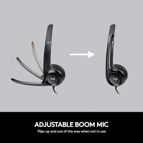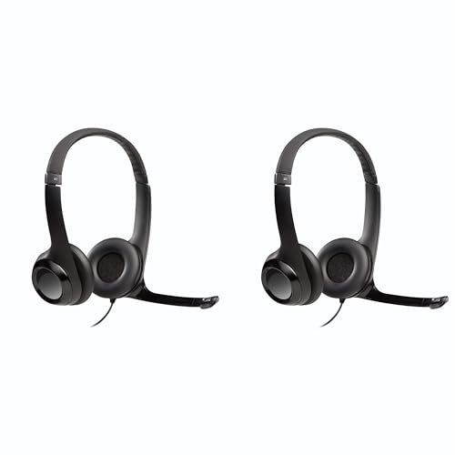 Logitech - سماعة رأس سلكية مع ميكروفون من لوجيتيك، موديل H390 للكمبيوتر واللاب توب، سماعات رأس ستيريو مع ميكروفون بخاصية إلغاء الضوضاء مع USB وتحكم داخلي مدمج، تعمل مع كروم بوك - عبوة من قطعتين (أسود)