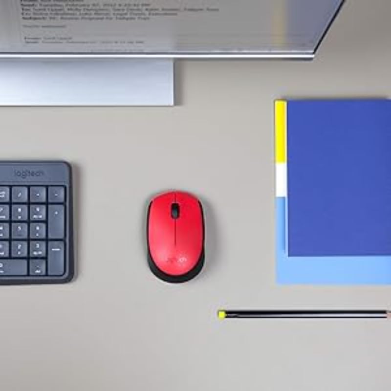 Logitech - ماوس لاسلكي بحجم صغير وتحكم سلس في المؤشر للاب توب والكمبيوتر من لوجيتيك- لون أحمر، موديل M171