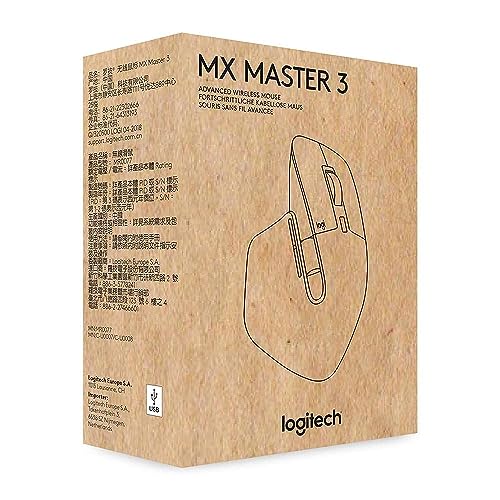 Logitech - ماوس بلوتوث ام اكس ماستر 3 من لوجيتك ببطارية قابلة لاعادة الشحن حتى 70 يوم مع شحن سريع نوع C و7 ازرار للبرمجة وعجلة تمرير فائقة السرعة
