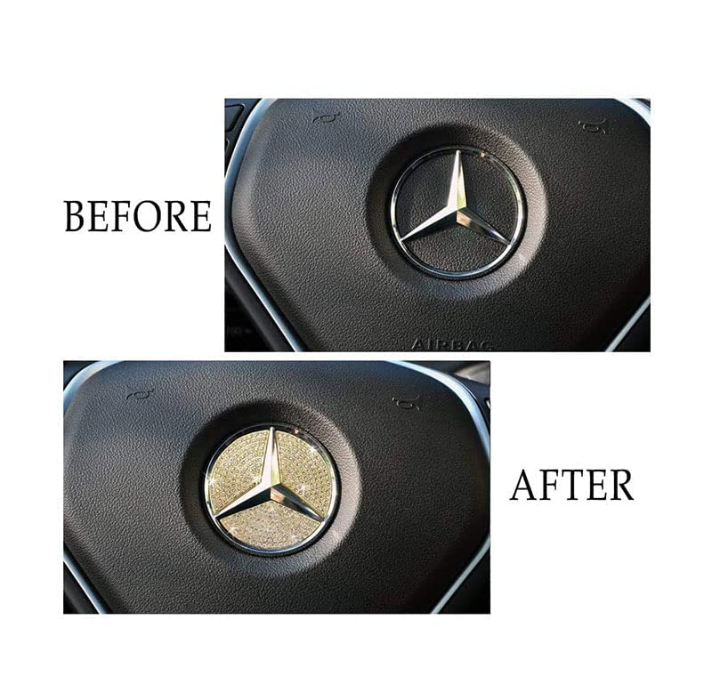 Generic - ملحق لوجو حلقة دركسيون متوافق مع سيارة مرسيدس موديل 2020 فئة ايه، لون ذهبي