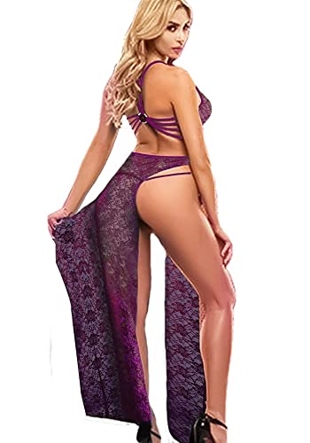 Generic - لانجيري دانتيل طويل من الامام برباط جانبي لون ارجواني