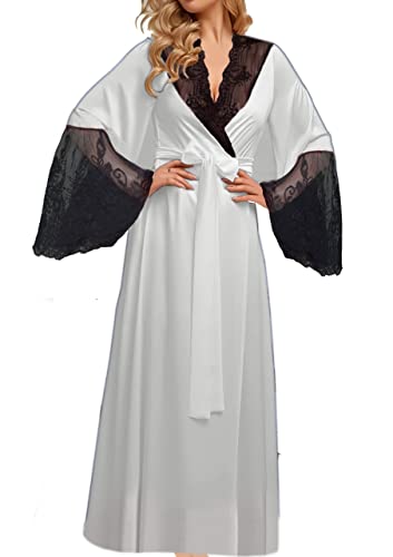 Generic - روب لانجري طويل من الساتان، ابيض