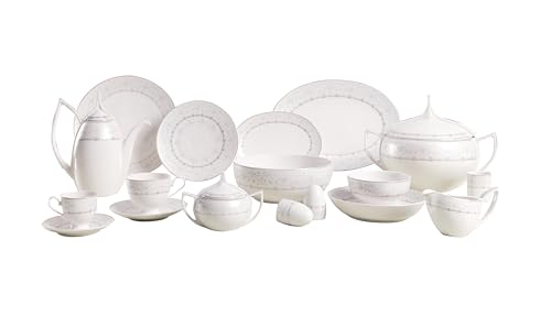 Lotus - طقم عشاء بورلسين 1002310 صوفيا من لوتس، 62 قطعة، لون أبيض