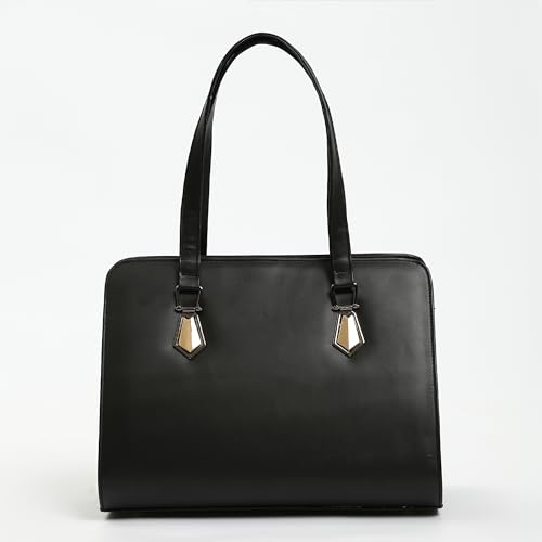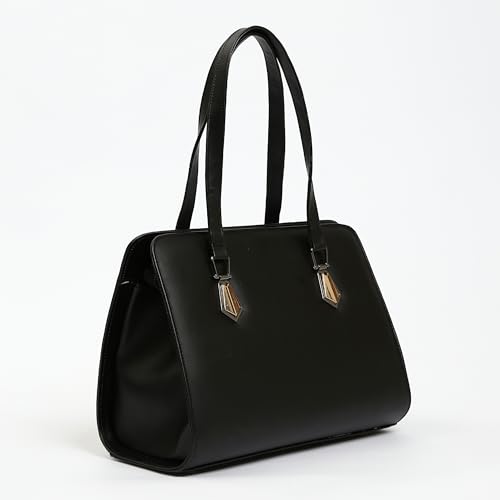 شنطة يد للنساء من لو مصنوعة من الجلد الحاصل على براءة اختراع، تصميم هيكلي، مقبض مزدوج، لون اسود