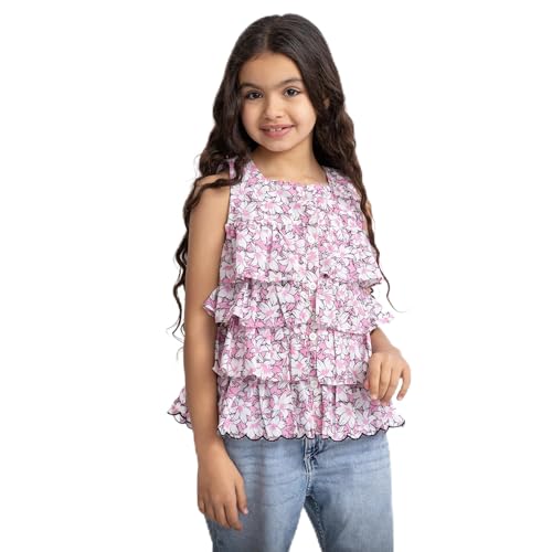 lovely land - بلوزة عصرية بدون أكمام للبنات البيبي من لوفلي لاند، أبيض ووردي