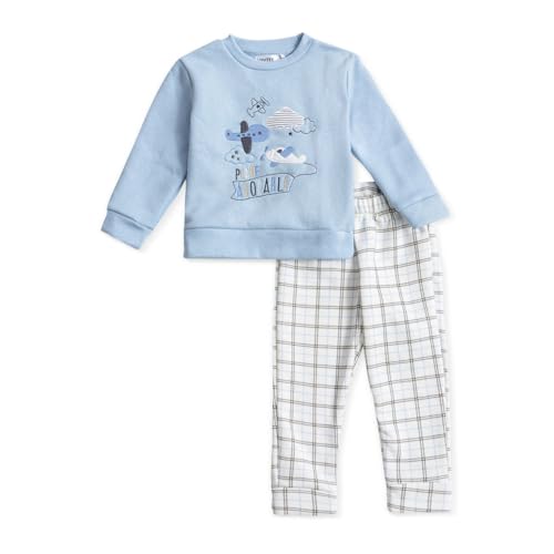 lovely land - طقم بيجامة مكون من قميص بلون ازرق فاتح وزخارف على الصدر مع بنطلون مخطط بلون ازرق للاولاد (عبوة من قطعة واحدة)