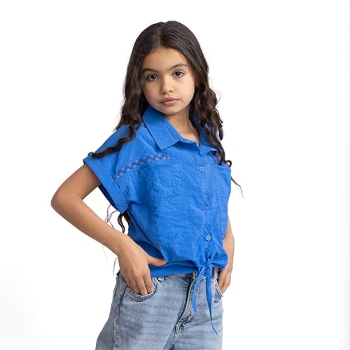 lovely land - بلوزة عصرية بياقة وجيوب للبنات من لوفلي لاند، لون أزرق