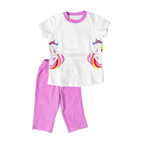 lovely land - طقم بيجامة للبنات بطبعة يونيكورن من لوفلي لاند، أبيض