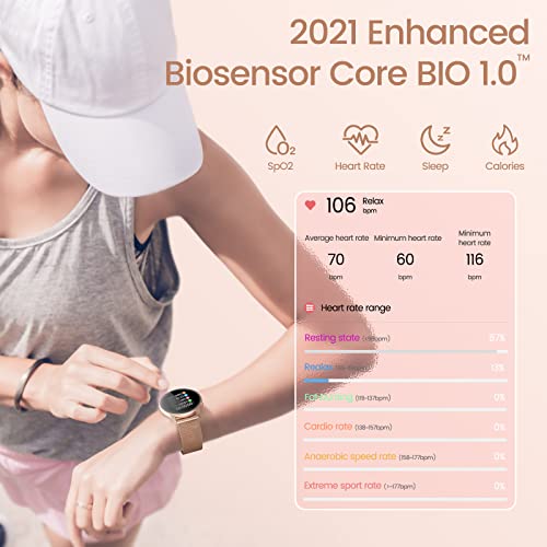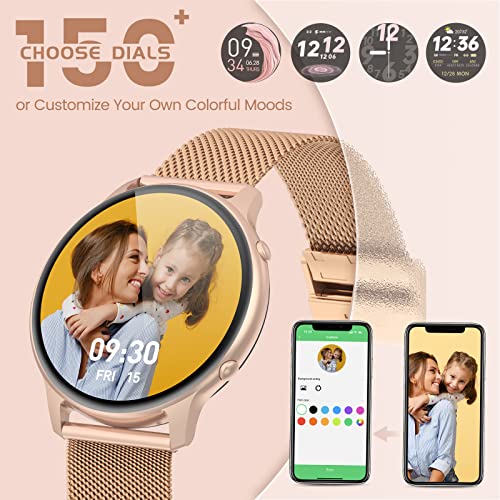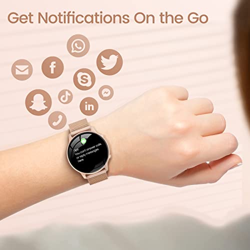 Lovtutu - ساعات ذكية للنساء 2022 جديدة كليا لجوالات اندرويد وايفون بسوار من الستانلس ستيل، ساعة تتبع اللياقة البدنية مقاومة للماء 3 ايه تي ام مع خاصية النوم ومعدل ضربات القلب ومراقبة الاكسجين في الدم، ذهبي وردي