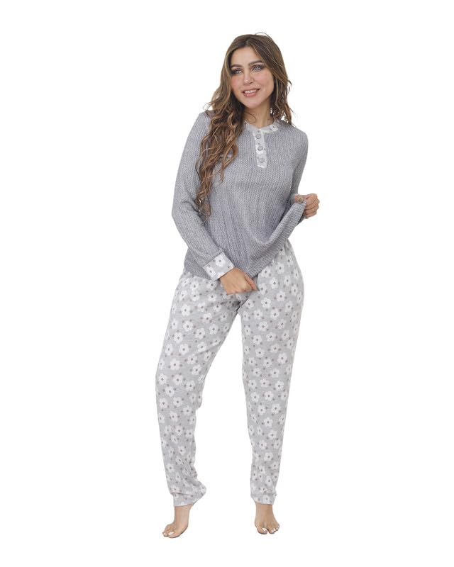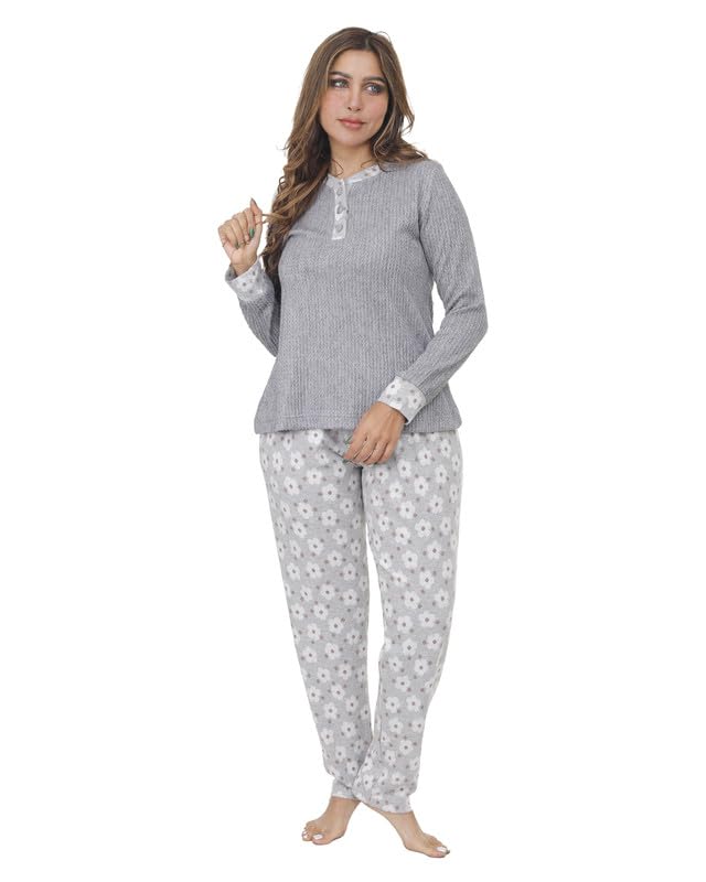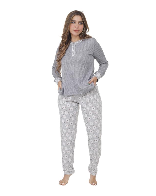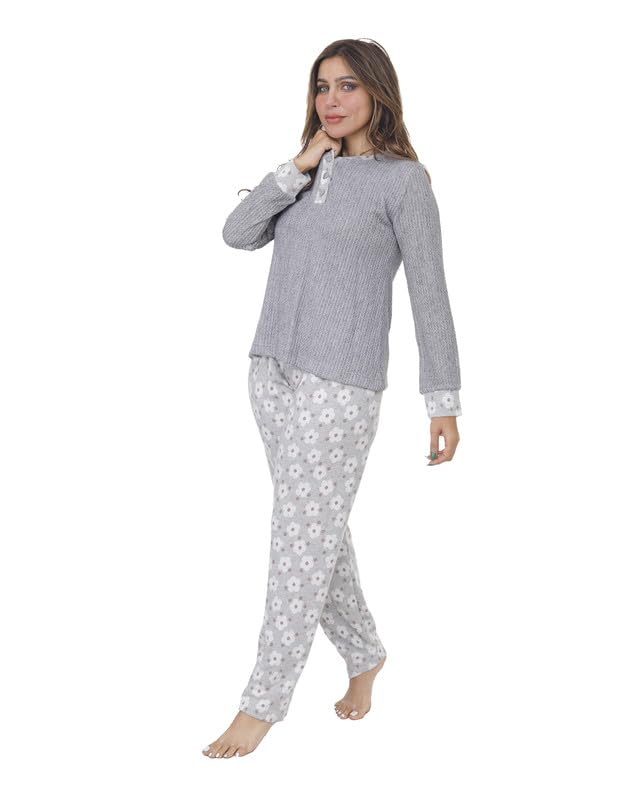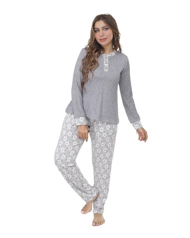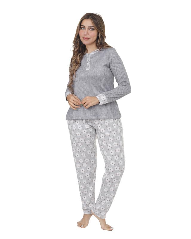 Luna - بيجامة قطن بأكمام طويلة مقاس L للنساء من LUNA - رمادي غامق