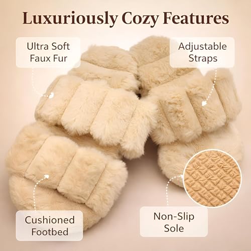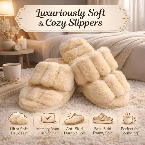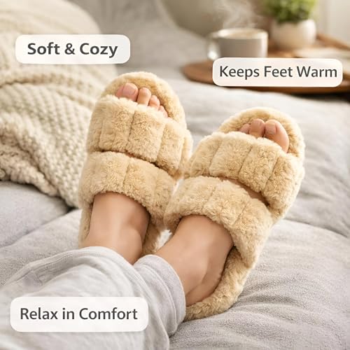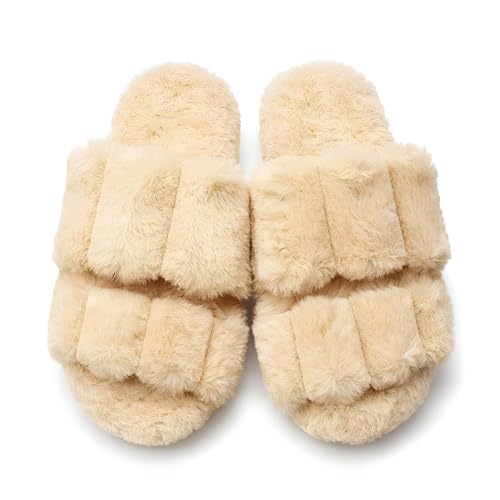 Generic - شباشب من فرو صناعي فائقة النعومة من القطيفة مع فوم ميموري للراحة ونعل مانع للانزلاق ومقدمة مفتوحة لارتداء منزلي مريح، بيج (41 EU)