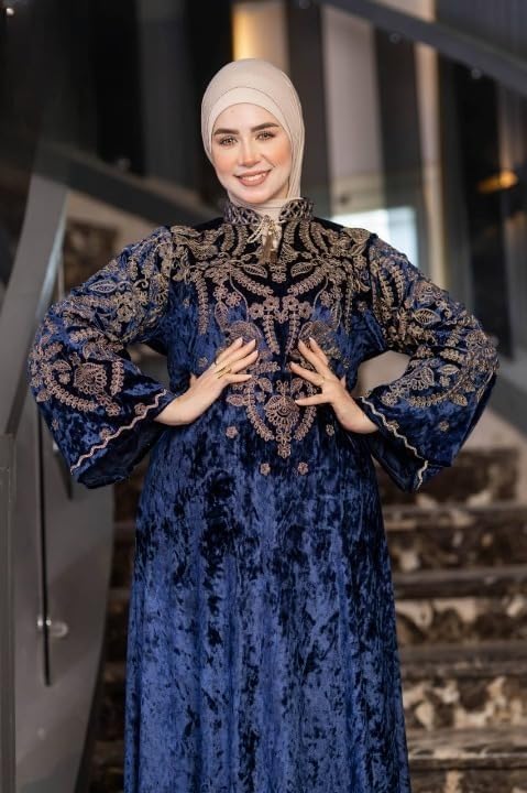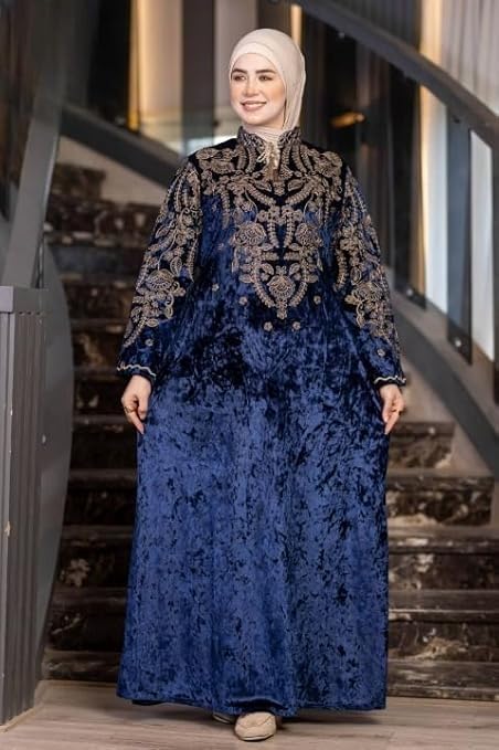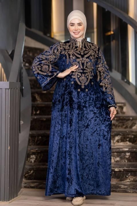 Generic - عباية شتوي قطيفة هايدي فاخرة للمحجبات – تطريز أنيق بكم واسع وغطاء رأس – خامة معالجة ضد الانكماش – مقاسات كبيرة من 65 حتى 120 كيلو