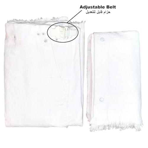 Generic - طقم ملابس إحرام للرجال (فوط إحرام قطنية 100% مع جيوب وحزام قابل للتعديل، سجادة صلاة، سبحة صلاة، صابون بدون رائحة، كتيب مناسك كاملة وشبشب اختياري غير مخيط) للعمرة/ الحج