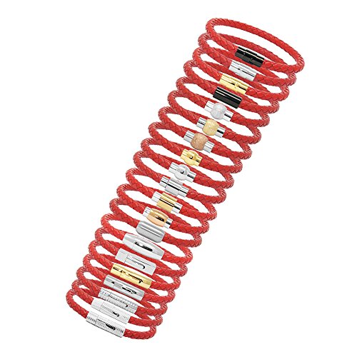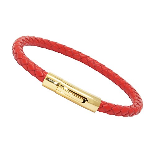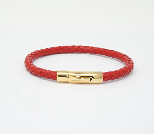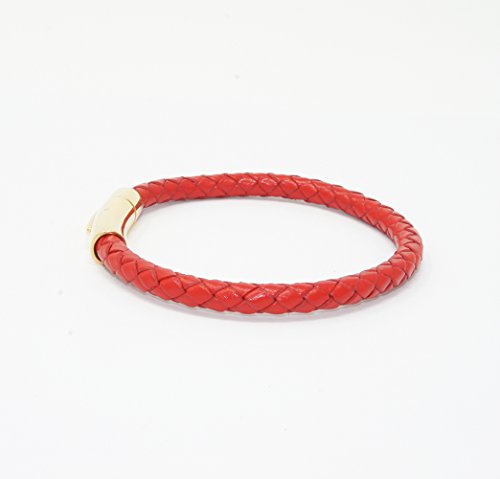 Generic - سوار للجنسين من الجلد الاصلي مضفر بمشبك مغناطيسي من الستانلس ستيل من ال زد دي، لون احمر