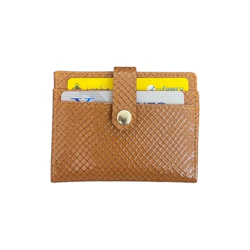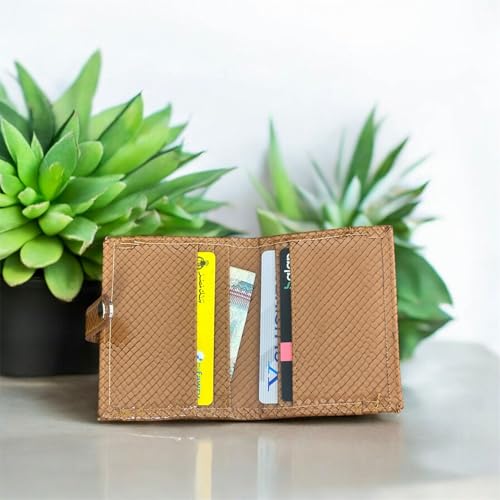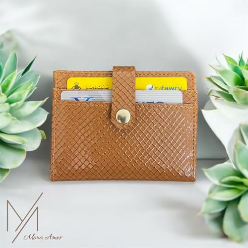 M A - محفظة مبطنة من الجلد الحاصل على براءة اختراع من ام ايه، لون بني، اغلاق بزر كبس
